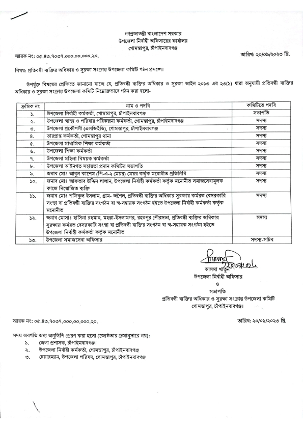 | ২ | প্রতিবন্ধী ব্যক্তির অধিকার ও সুরক্ষা সংক্রান্ত উপজেলা কমিটি গঠন | | | ০৬-১০-২০২৩ | দেখুন |